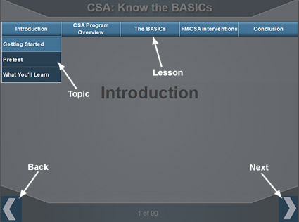 To learn how to navigate this course, select the Next button (to the right). You can return to the course at any time by selecting the X in the top right corner of this box.